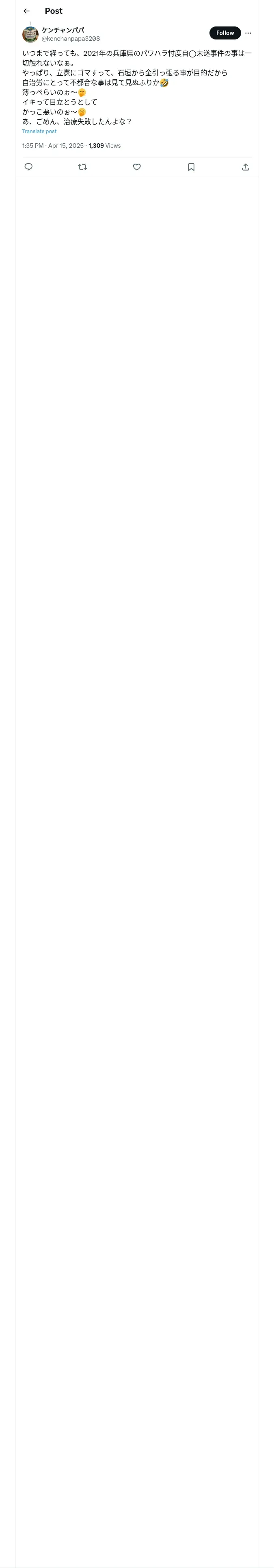 取得元URL: https://x.com:443/kenchanpapa3208/status/1912001698450776133