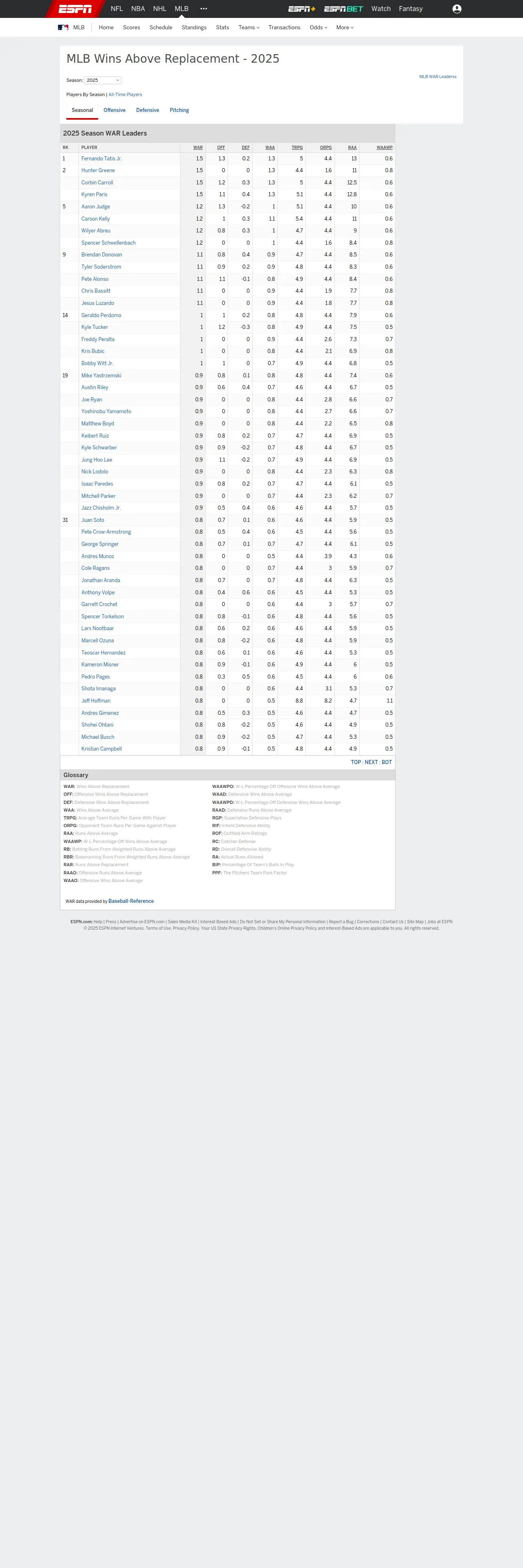 取得元URL: https://www.espn.com:443/mlb/war/leaders
