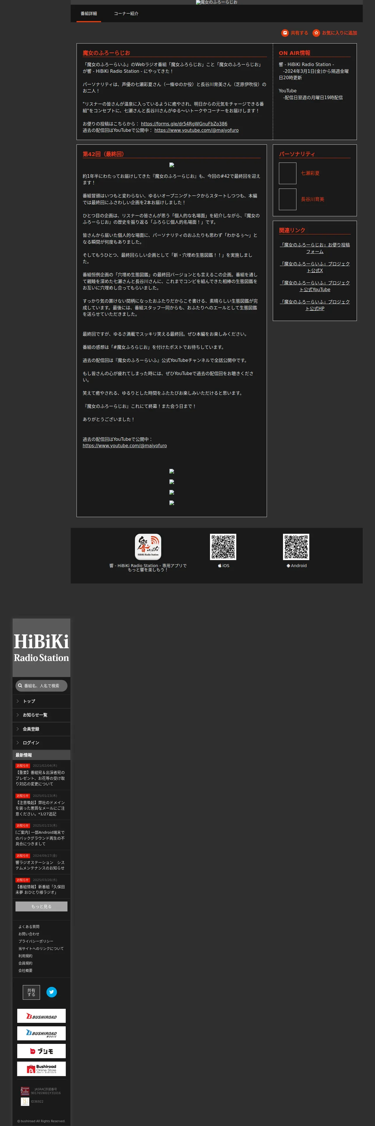 https://hibiki-radio.jp:443/description/majyofuroradio/detail