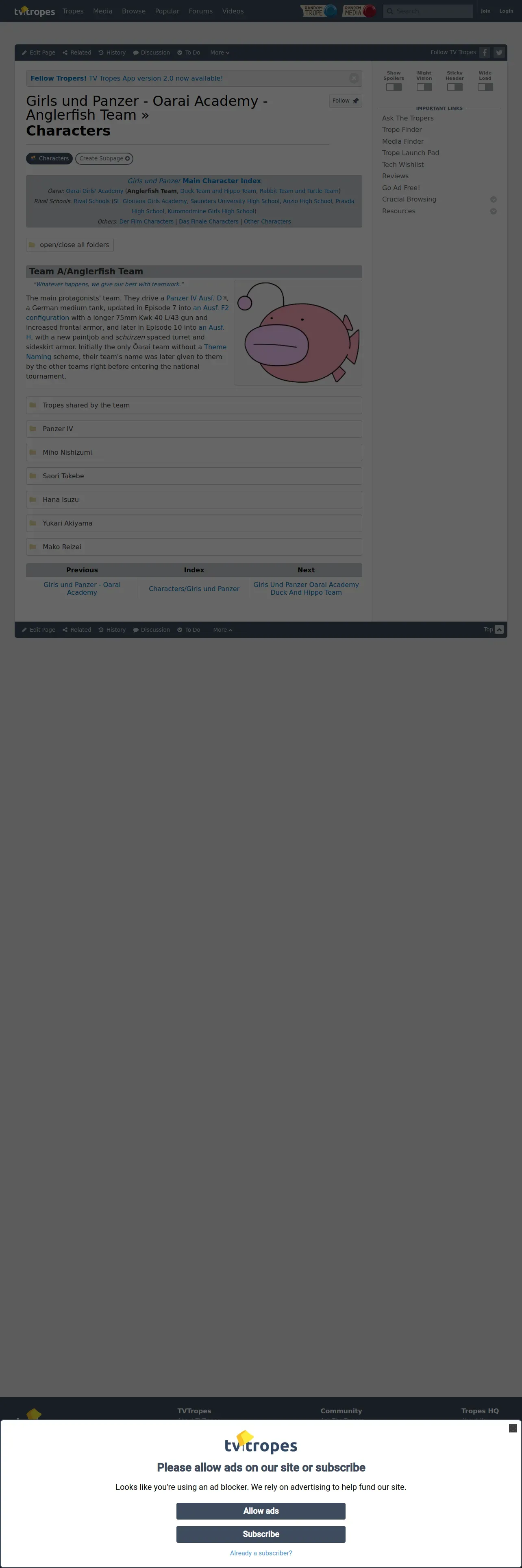 https://www.tvtropes.org:443/pmwiki/pmwiki.php/Characters/GirlsUndPanzerOaraiAcademyAnglerfishTeam