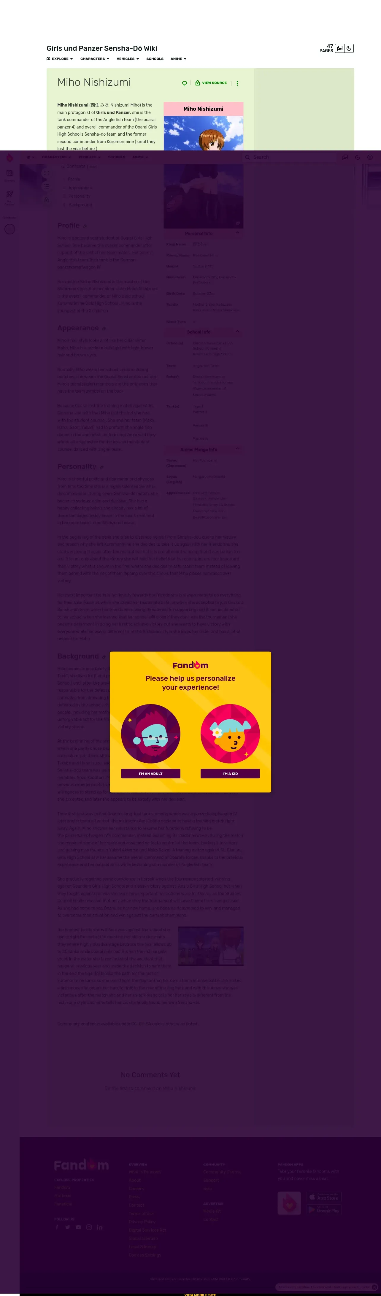 取得元URL: https://girls-und-panzer-sensha-dou.fandom.com:443/wiki/Miho_Nishizumi
