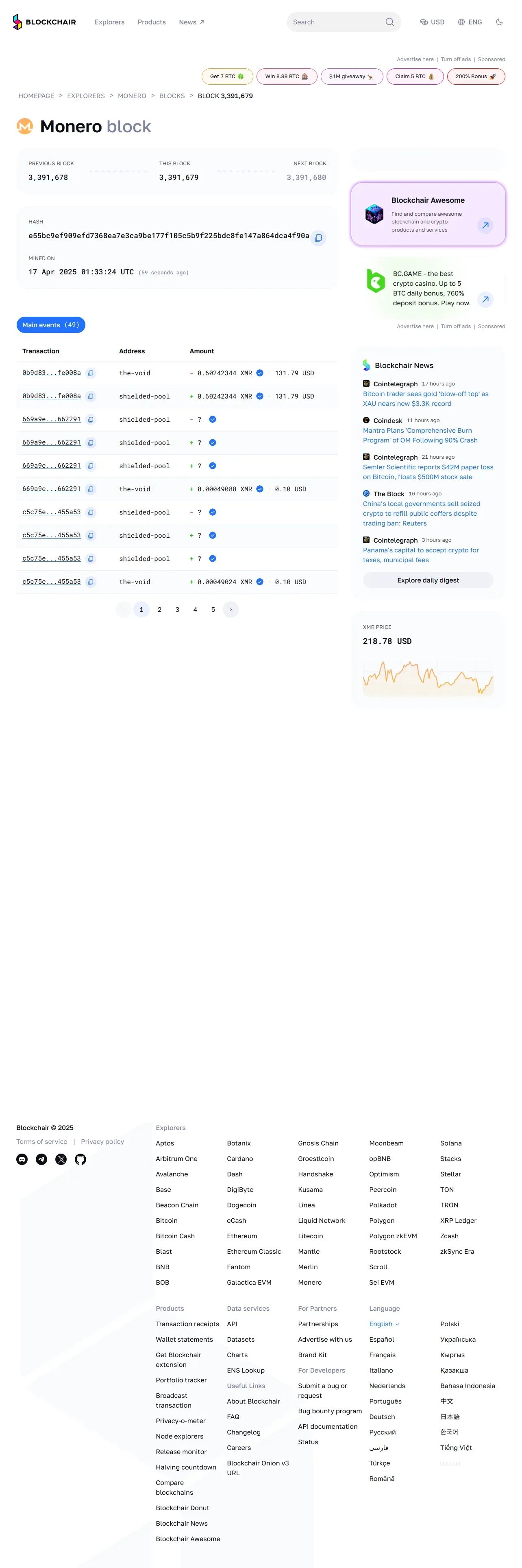 取得元URL: https://blockchair.com:443/monero/block/3391679