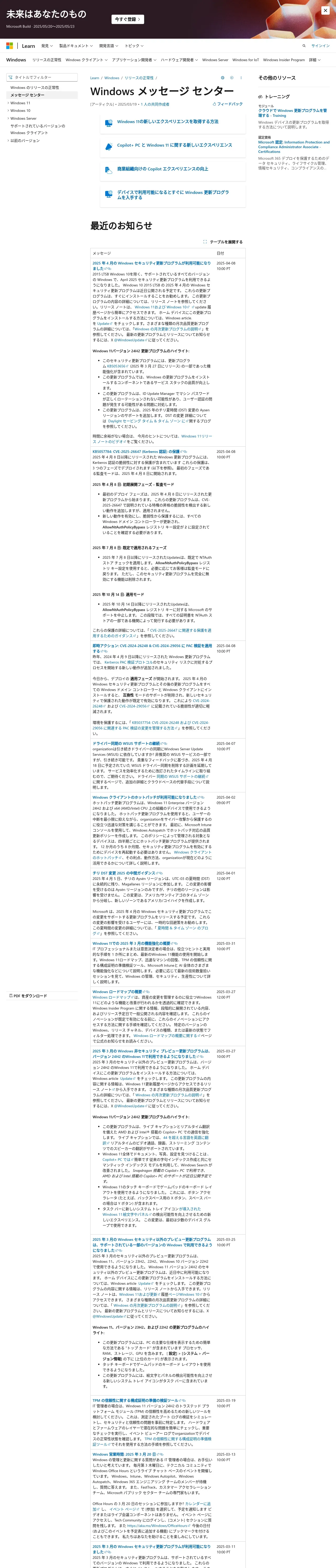 https://learn.microsoft.com:443/ja-jp/windows/release-health/windows-message-center
