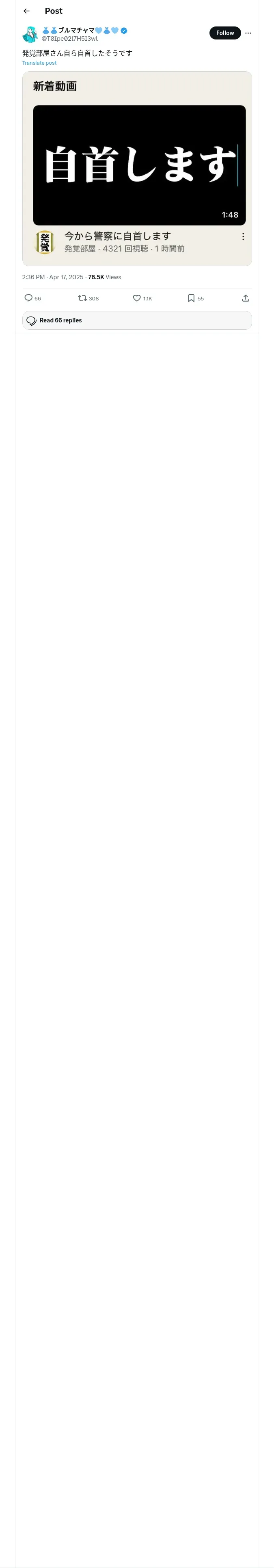 取得元URL: https://x.com:443/T0Ipe02l7H5I3wl/status/1912741872218558726
