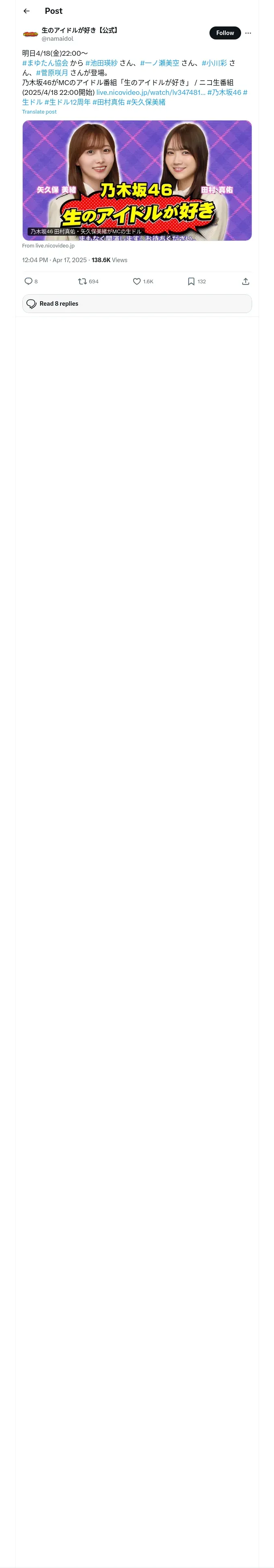 https://x.com:443/namaidol/status/1912703561743626495