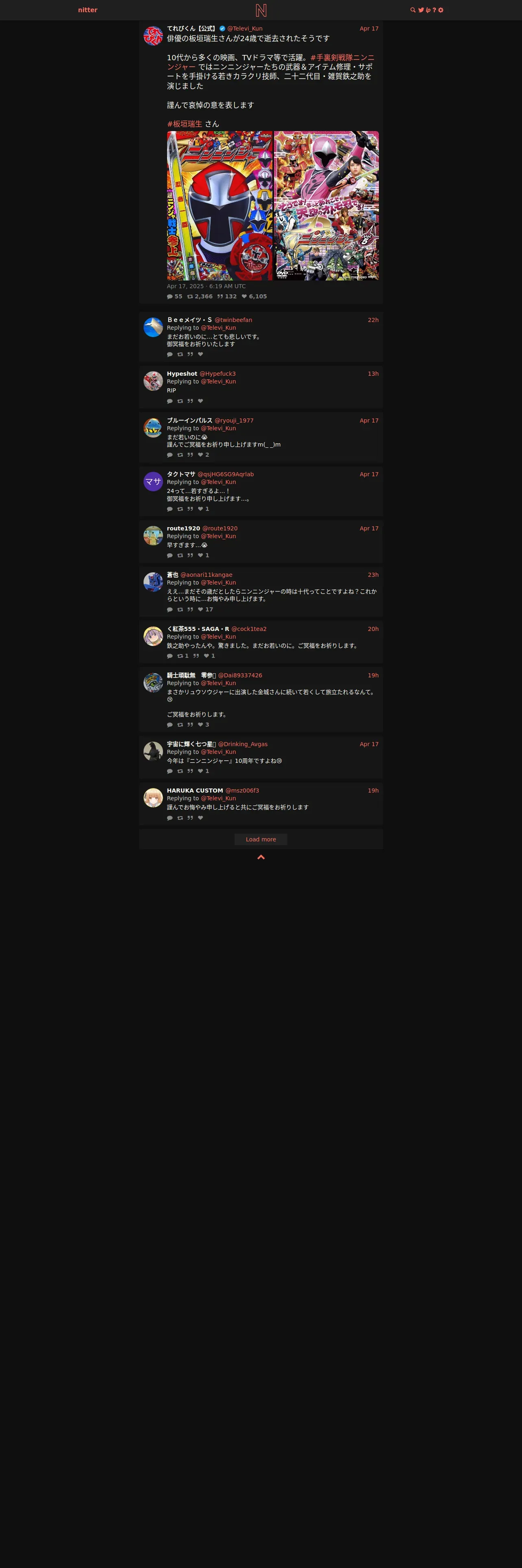 取得元URL: https://nitter.net:443/Televi_Kun/status/1912752795968839852
