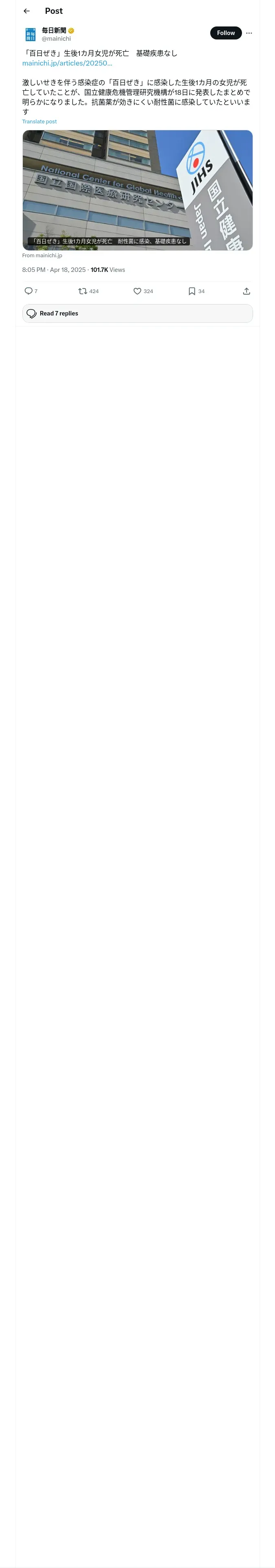 取得元URL: https://x.com:443/mainichi/status/1913187014746546204
