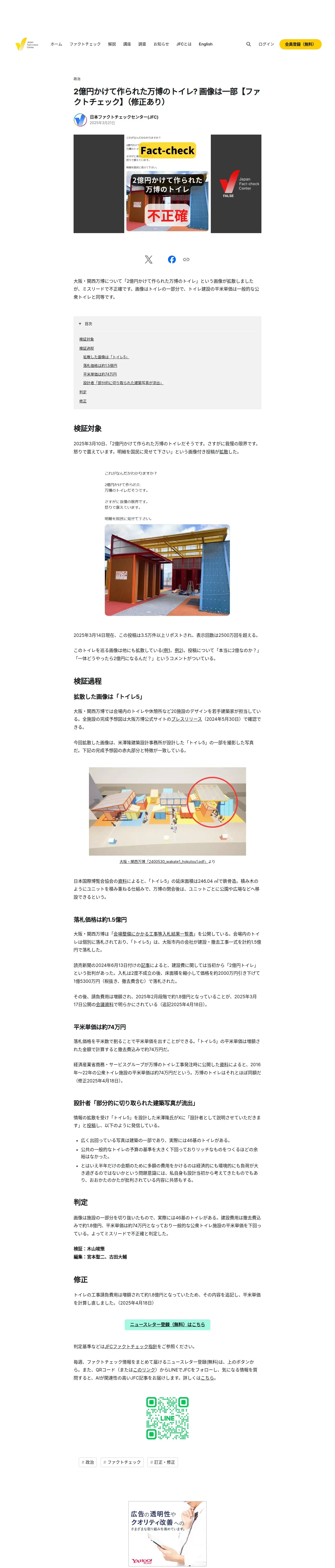 https://www.factcheckcenter.jp:443/fact-check/politics/inaccurate-expo-2025-toilet-cost/