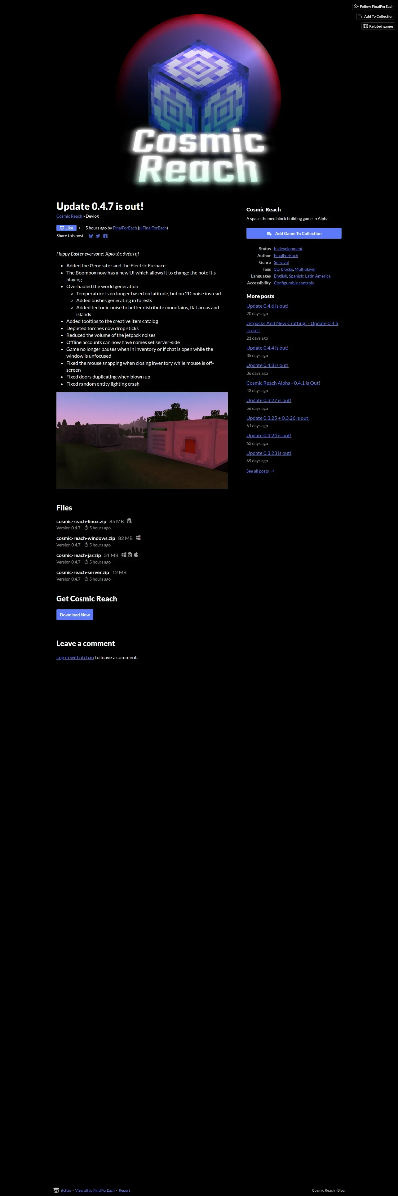 https://finalforeach.itch.io:443/cosmic-reach/devlog/929083/update-047-is-out