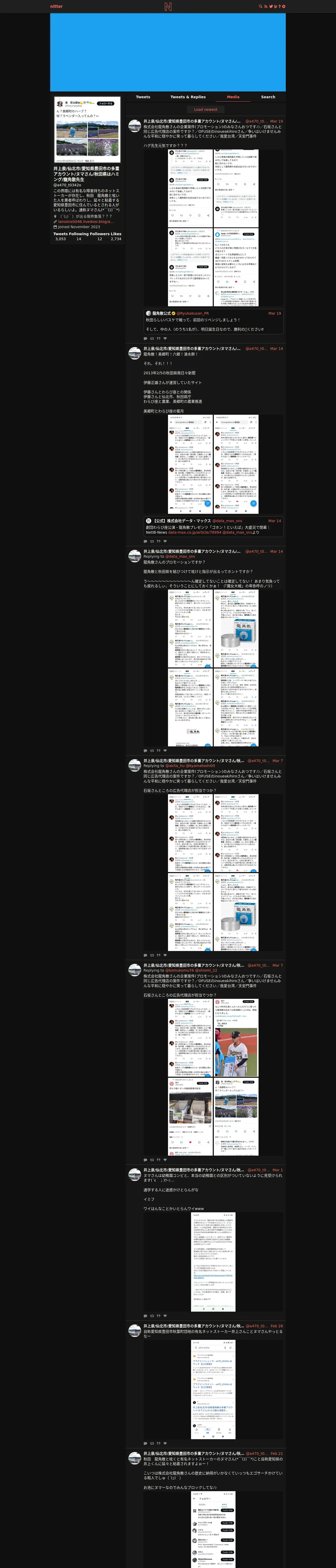 取得元URL: https://nitter.net:443/a470_t0342o/media?cursor=DAABCgABGpDhsLM__-kKAAIaZl_jPxrx6ggAAwAAAAIAAA