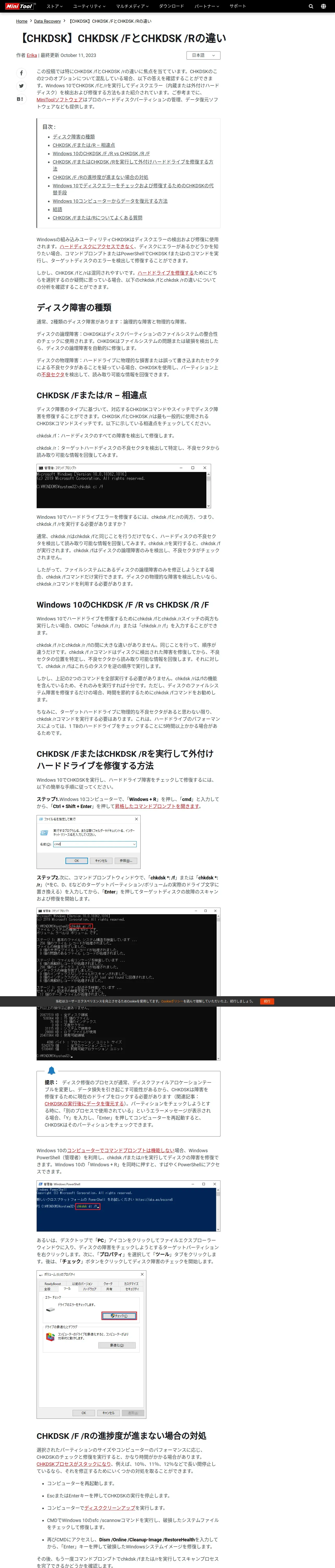 取得元URL: https://jp.minitool.com:443/data-recovery/chkdsk-f-or-r.html