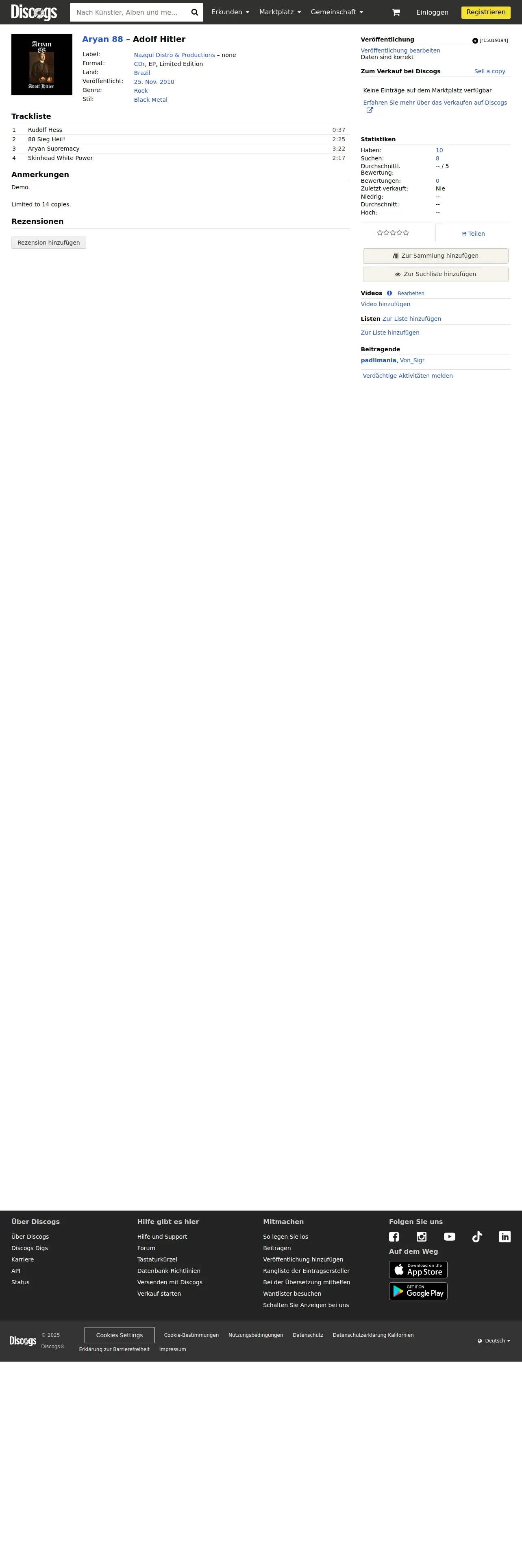 https://www.discogs.com:443/de/Aryan-88-Adolf-Hitler/release/15819194