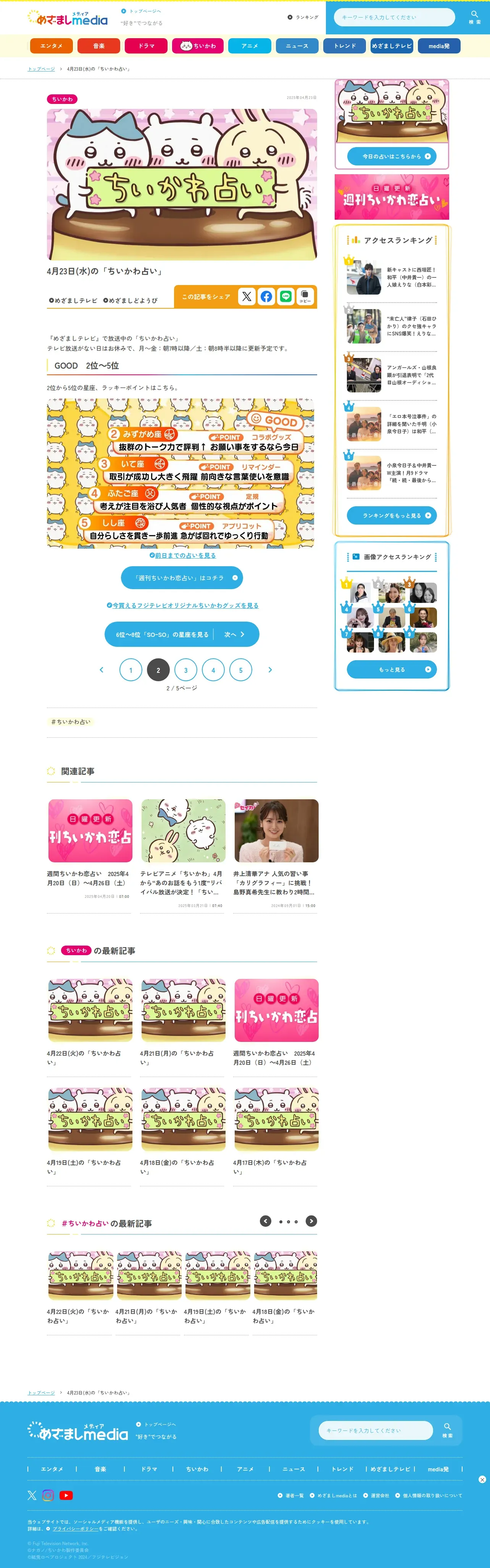 取得元URL: https://mezamashi.media:443/feature/chiikawa-fortune-daily?page=2