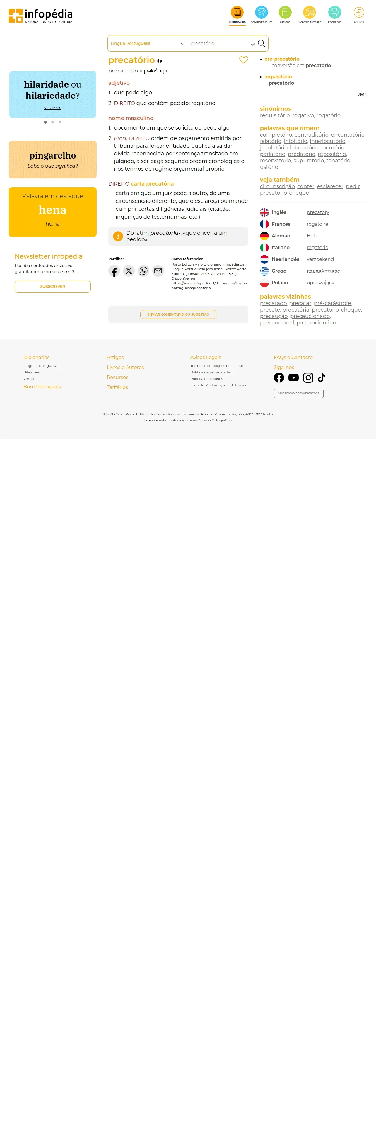 https://www.infopedia.pt:443/dicionarios/lingua-portuguesa/precat%C3%B3rio