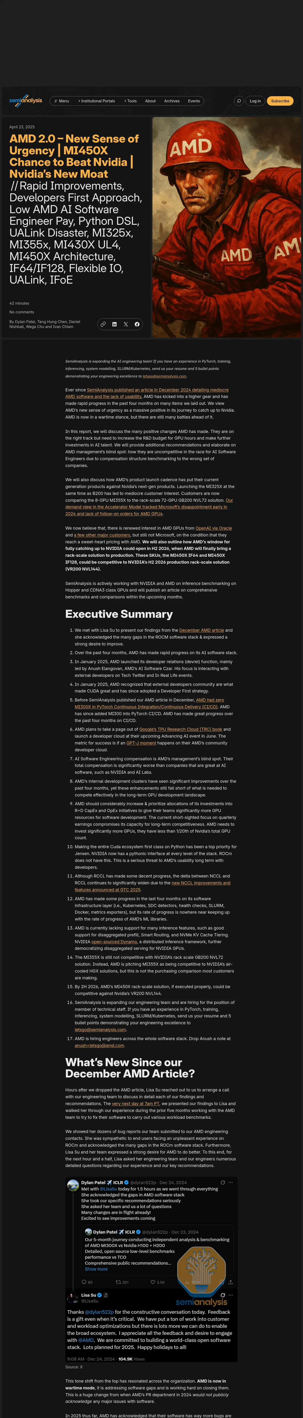 https://semianalysis.com:443/2025/04/23/amd-2-0-new-sense-of-urgency-mi450x-chance-to-beat-nvidia-nvidias-new-moat/