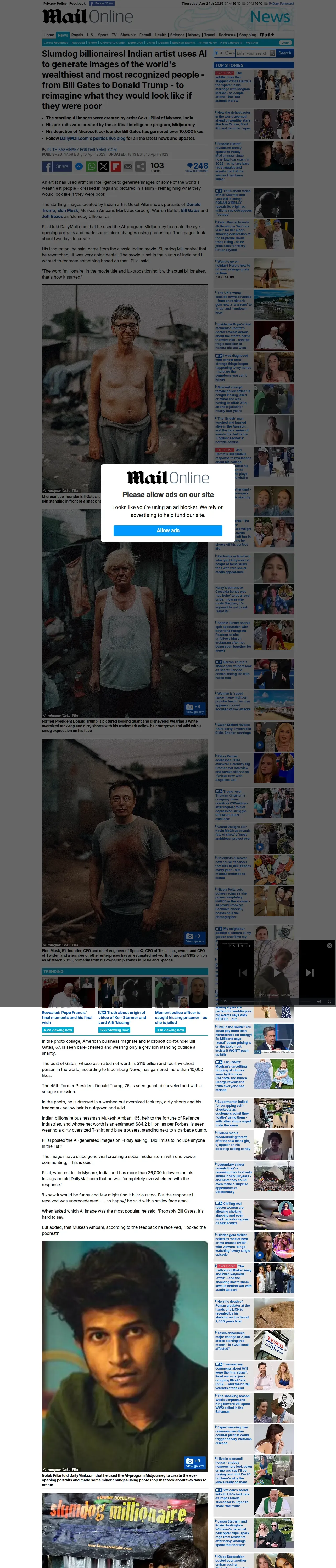 https://www.dailymail.co.uk:443/news/article-11956897/Artist-uses-AI-create-images-Bill-Gates-Donald-Trump-reimagine-theyd-look-like-poor.html