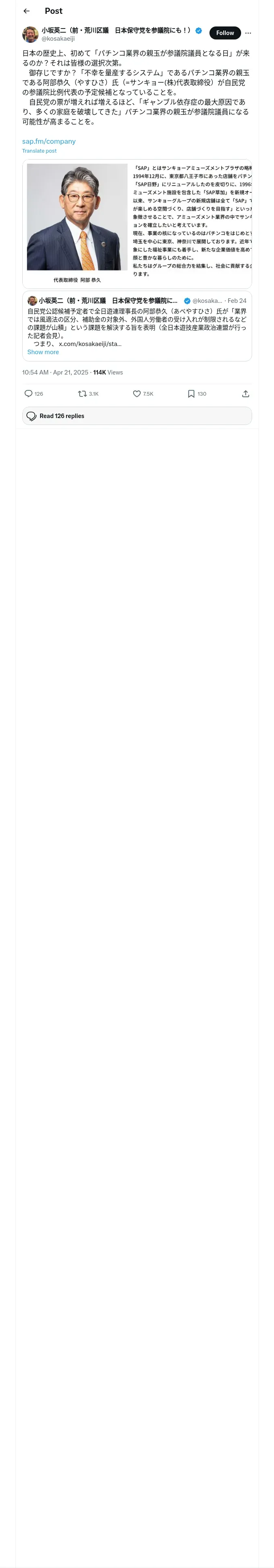取得元URL: https://x.com:443/kosakaeiji/status/1914135564246557009