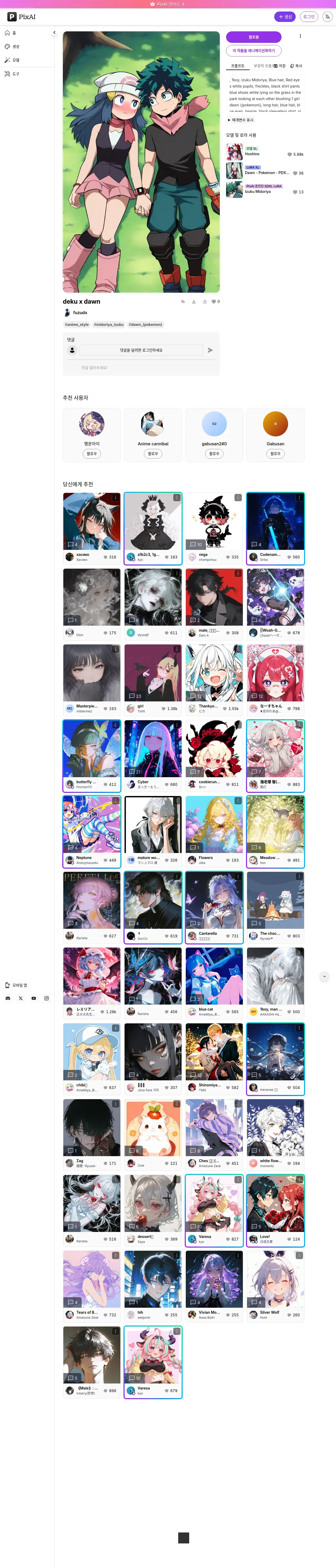 https://pixai.art:443/kr/artwork/1845880301075799810-deku-x-dawn
