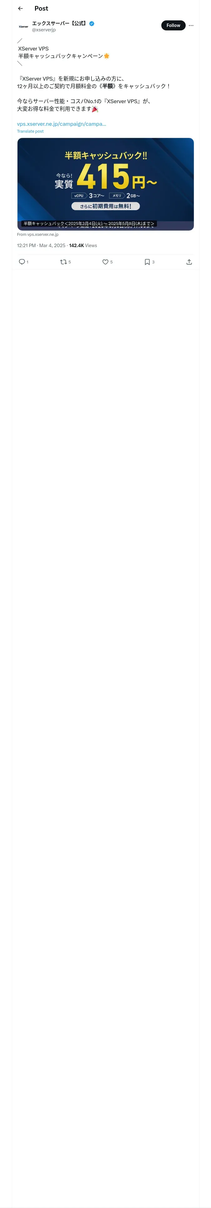 取得元URL: https://x.com:443/xserverjp/status/1896762787453657417