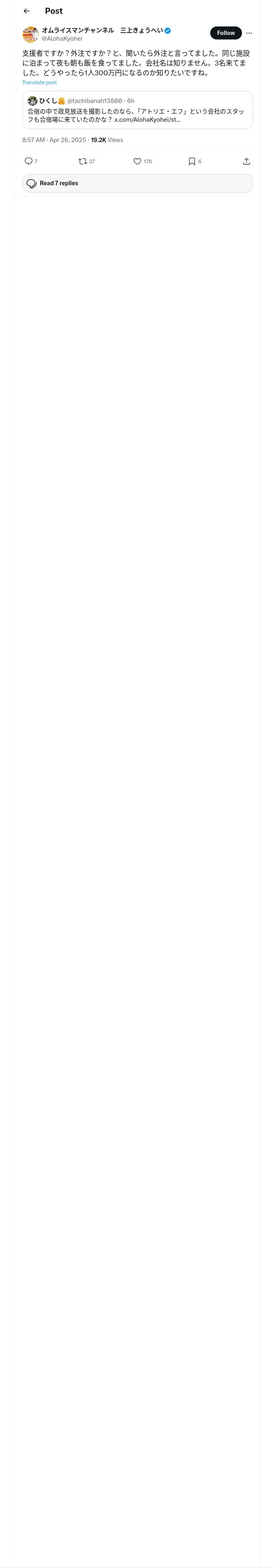 https://x.com:443/AlohaKyohei/status/1915917994070606299