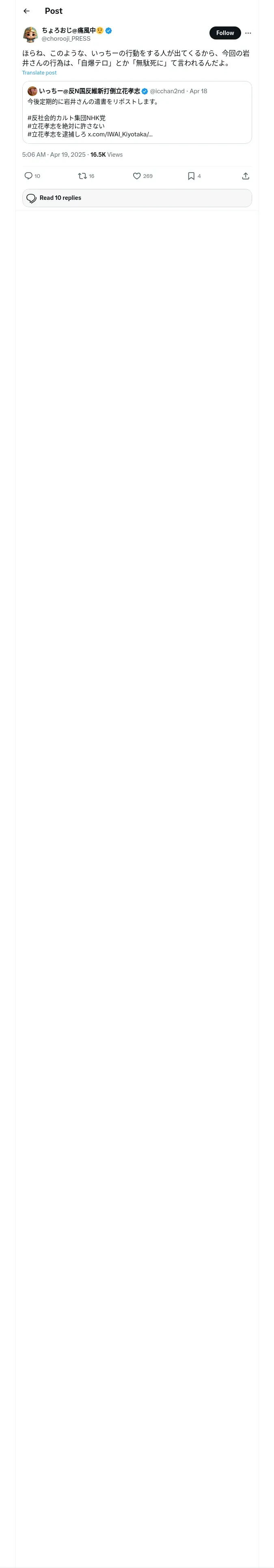取得元URL: https://x.com:443/chorooji_PRESS/status/1913323301902172183