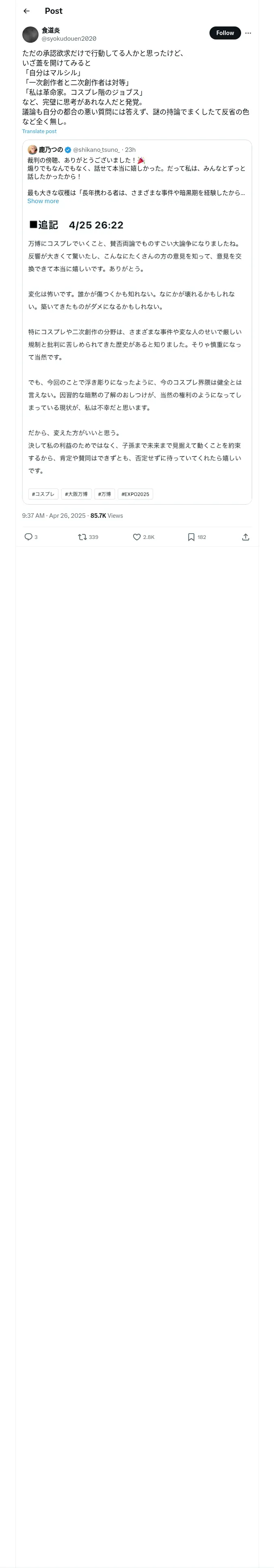 https://x.com:443/syokudouen2020/status/1915928216537338345
