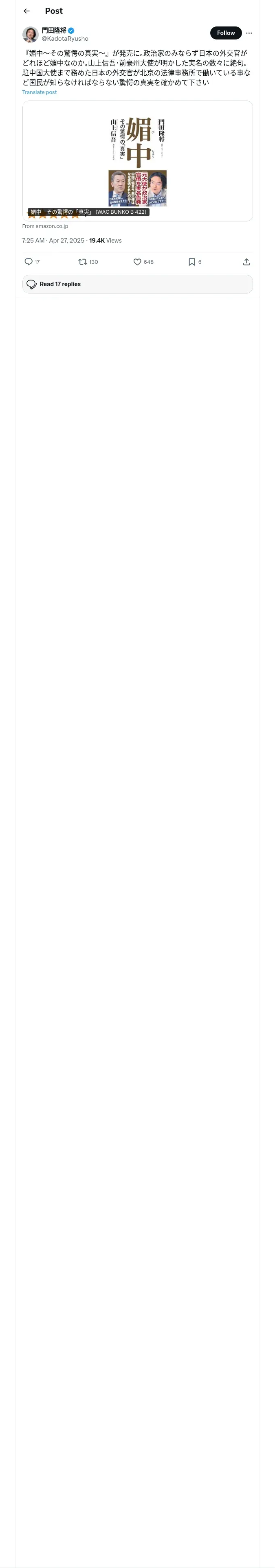 https://x.com:443/KadotaRyusho/status/1916257470374416562