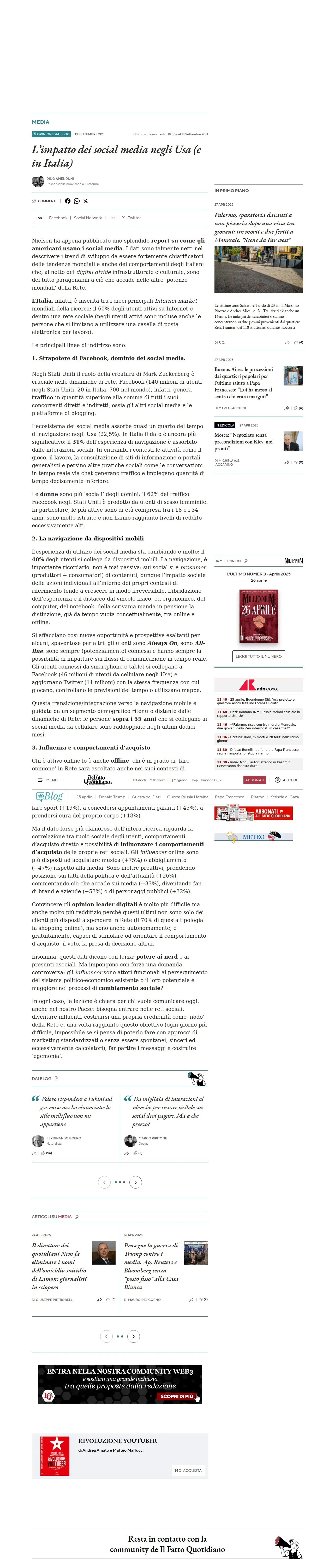 https://www.ilfattoquotidiano.it:443/2011/09/13/limpatto-dei-social-media-negli-usa-e-in-italia/157128/