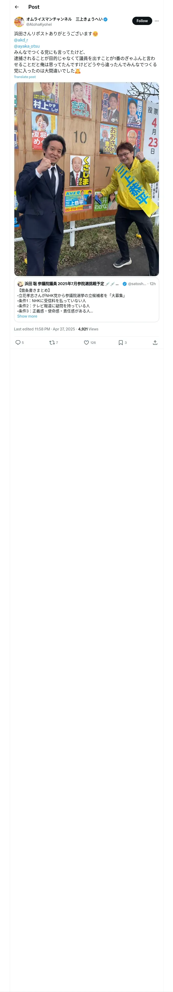 https://x.com:443/AlohaKyohei/status/1916507287444730287
