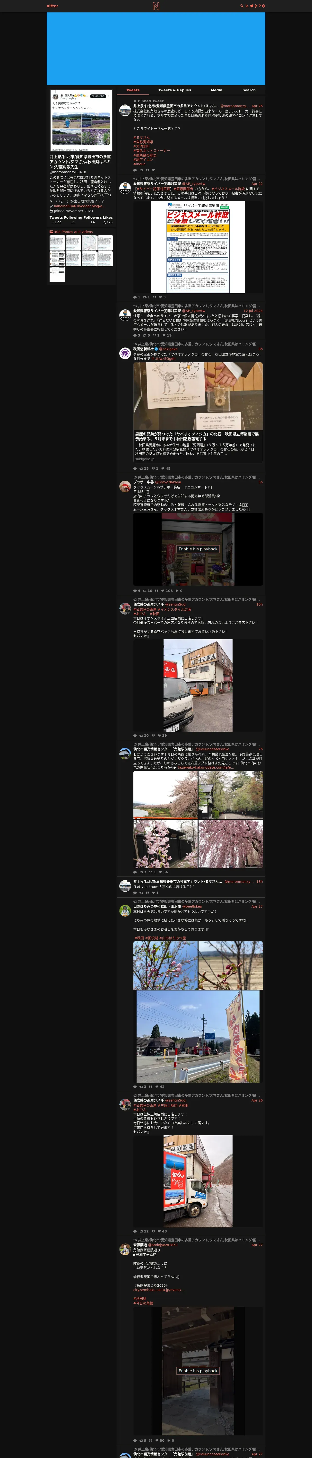 取得元URL: https://nitter.net:443/i/user/1726643536433704960