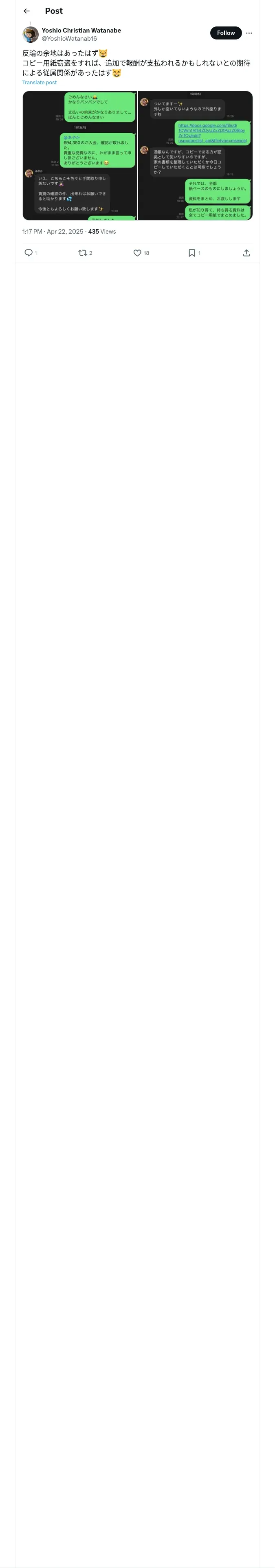 https://x.com:443/YoshioWatanab16/status/1914534020328964578