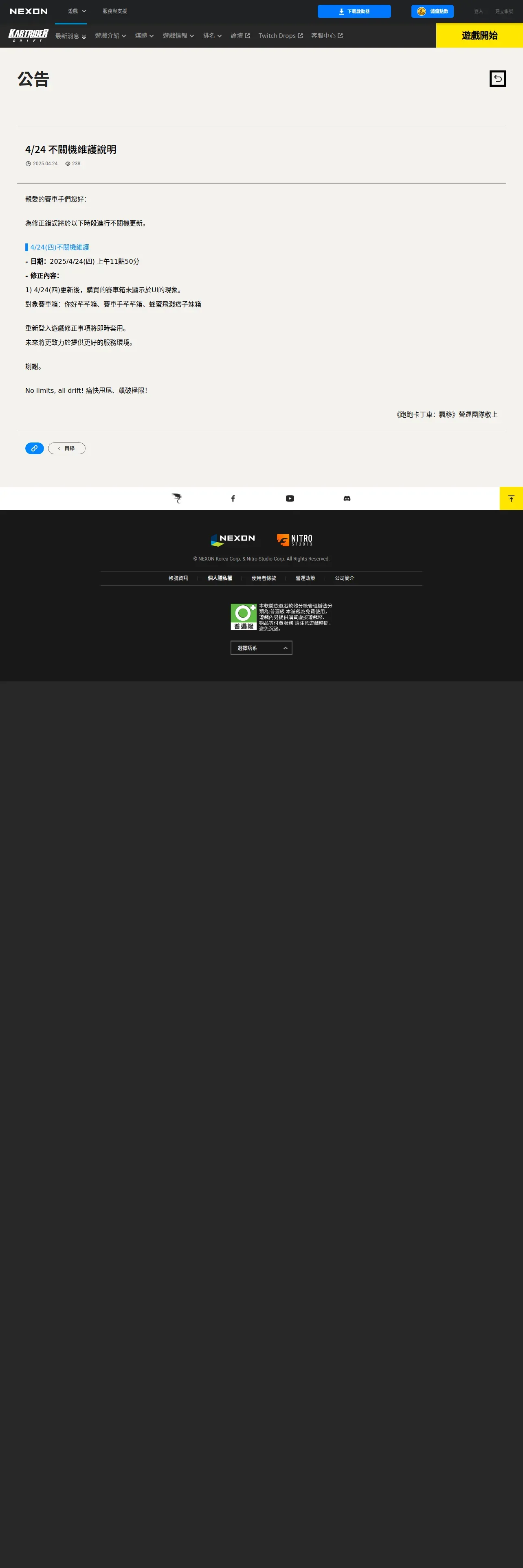 https://tw.nexon.com:443/kartdrift/zh/news/announcement/view?threadId=2840769