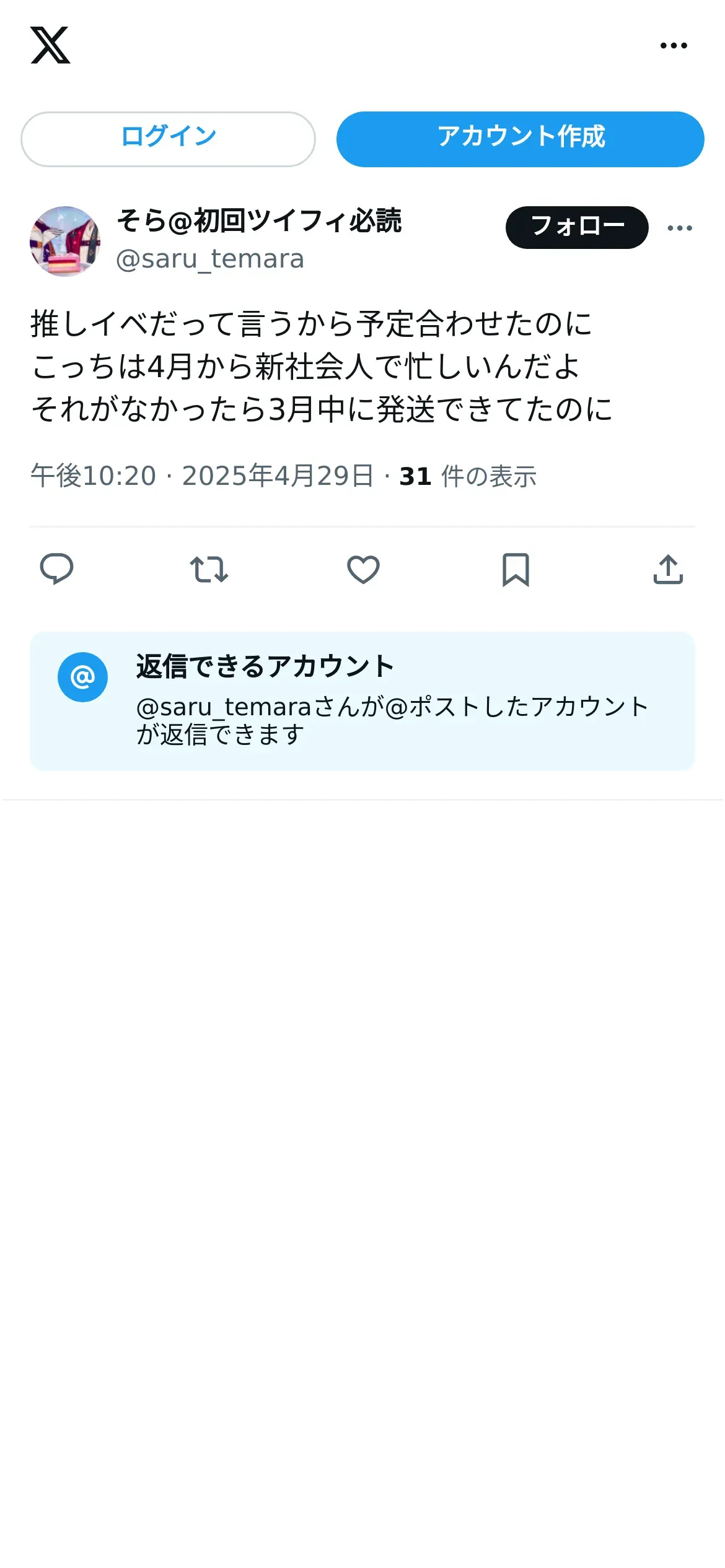 取得元URL: https://x.com:443/saru_temara/status/1917207365163815140?t=iiBoTIvHHR5ctWmT4qVVfw&s=19