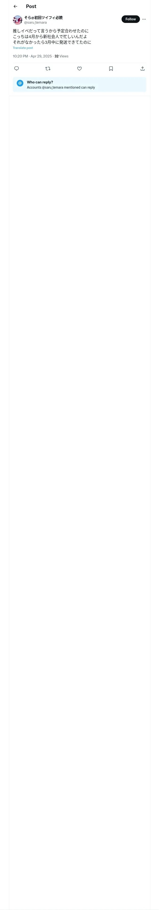 取得元URL: https://x.com:443/saru_temara/status/1917207365163815140?t=Us6s7LJ1k41bkBXfbci4lw&s=19