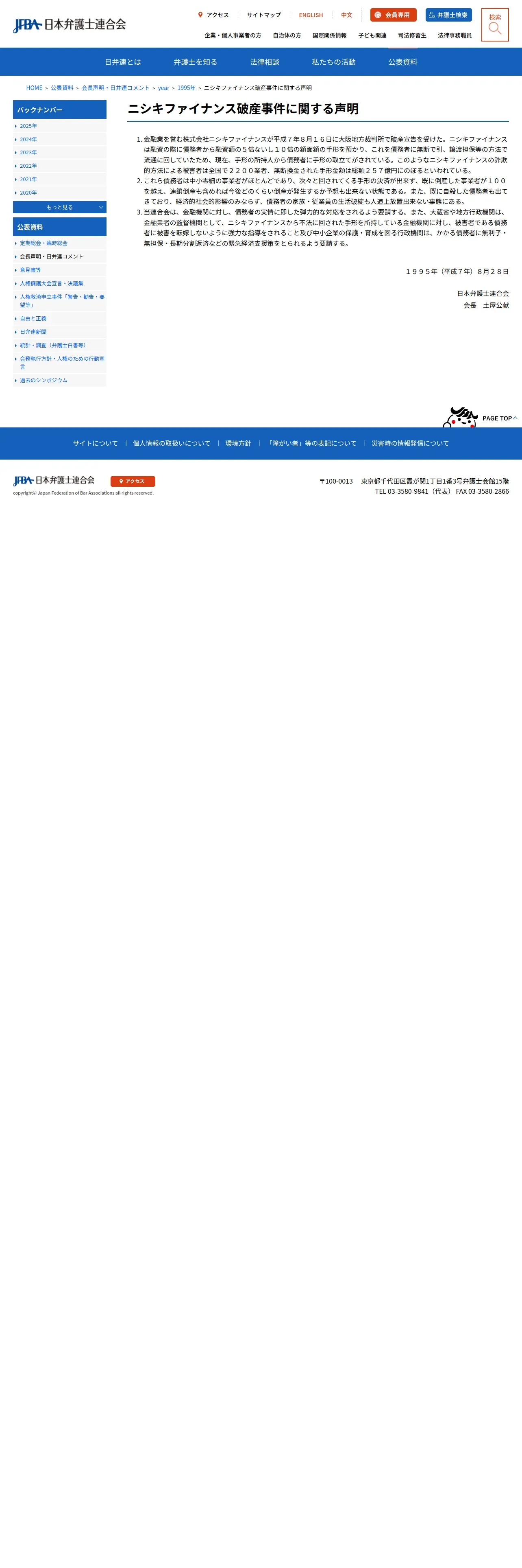 https://www.nichibenren.or.jp:443/document/statement/year/1995/1995_8.html