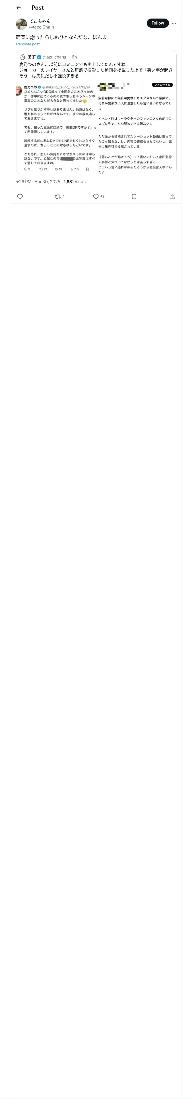 取得元URL: https://x.com:443/teco_Cha_n/status/1917495805910606141
