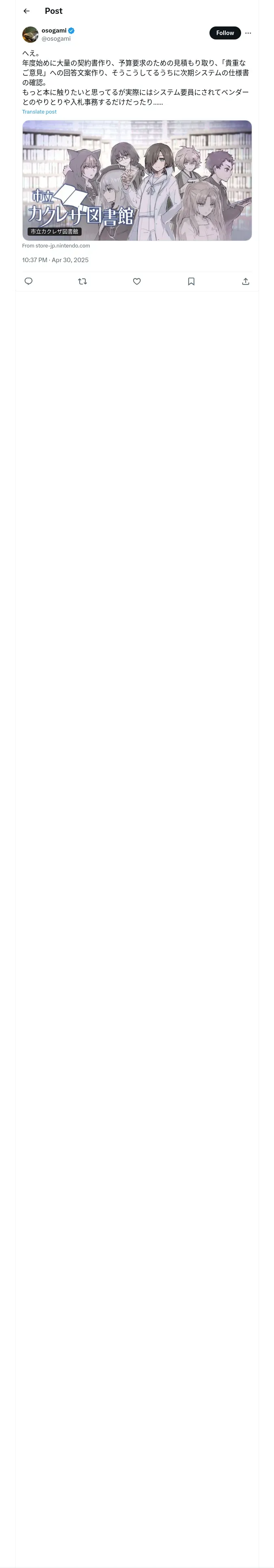 取得元URL: https://x.com:443/osogami/status/1917573905688191092