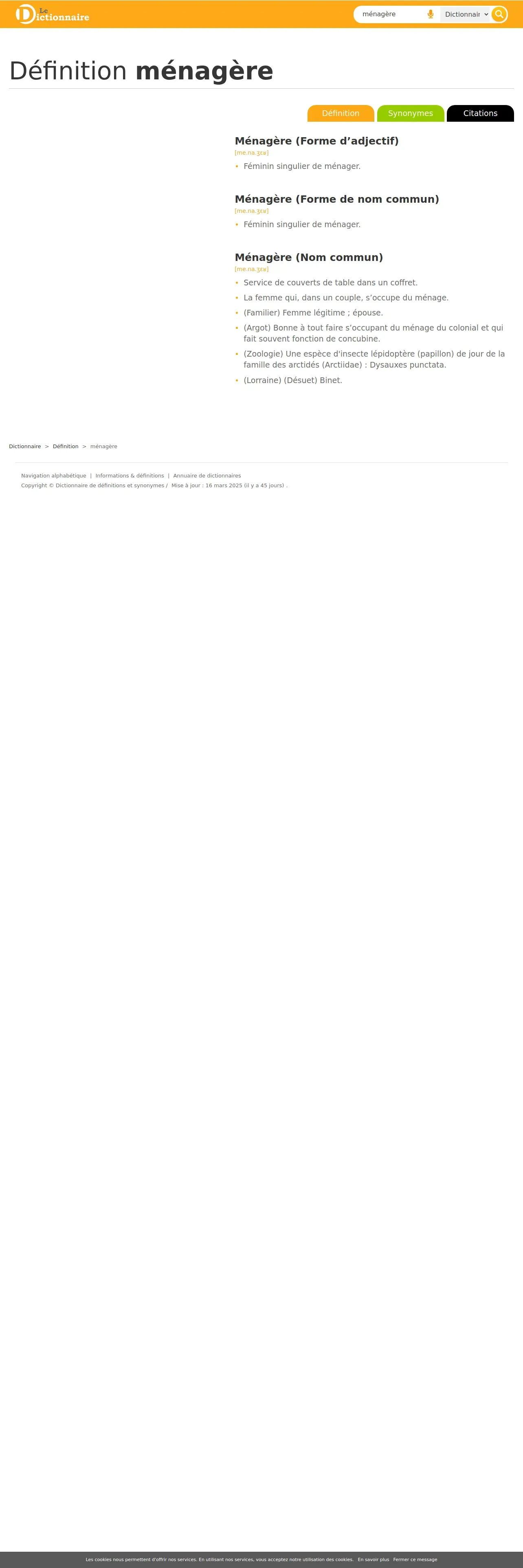 https://www.le-dictionnaire.com:443/definition/m%C3%A9nag%C3%A8re