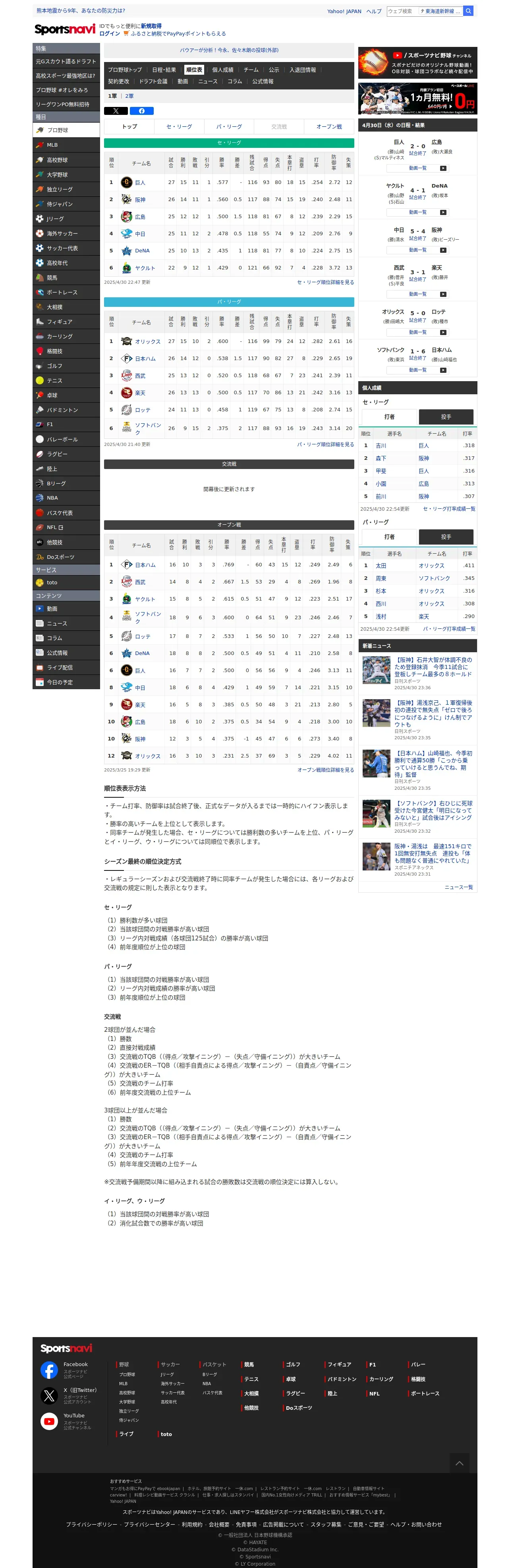 https://baseball.yahoo.co.jp:443/npb/standings/