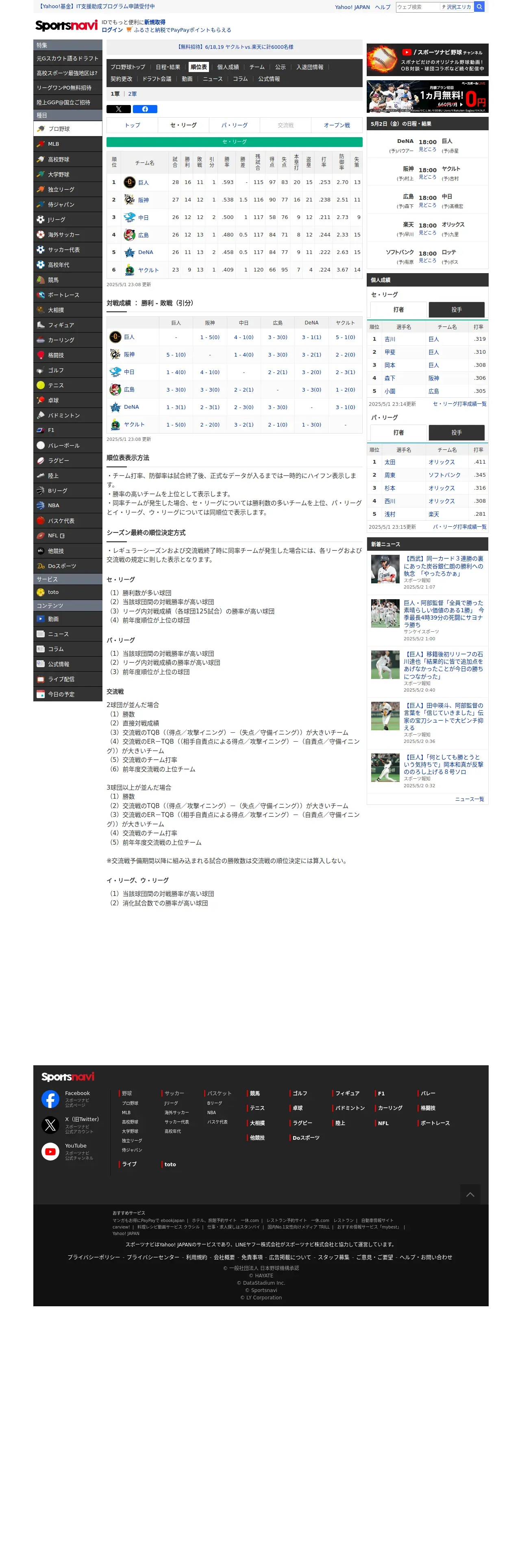 https://baseball.yahoo.co.jp:443/npb/standings/detail/1
