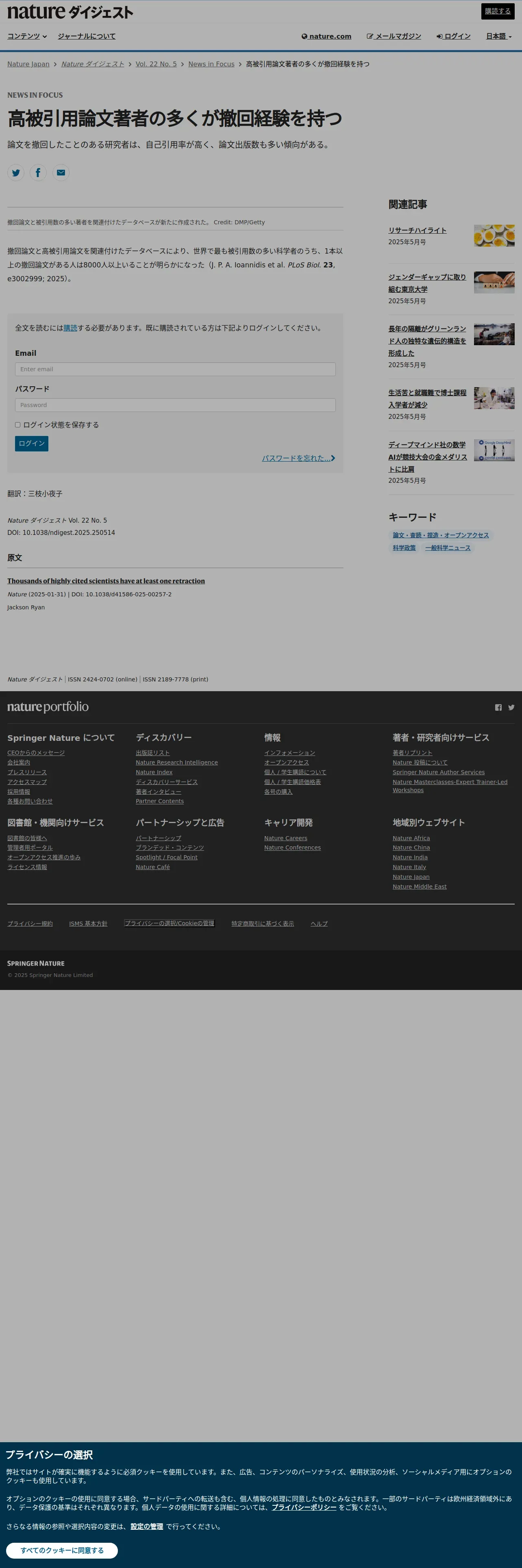 https://www.natureasia.com:443/ja-jp/ndigest/v22/n5/%E9%AB%98%E8%A2%AB%E5%BC%95%E7%94%A8%E8%AB%96%E6%96%87%E8%91%97%E8%80%85%E3%81%AE%E5%A4%9A%E3%81%8F%E3%81%8C%E6%92%A4%E5%9B%9E%E7%B5%8C%E9%A8%93%E3%82%92%E6%8C%81%E3%81%A4/130333