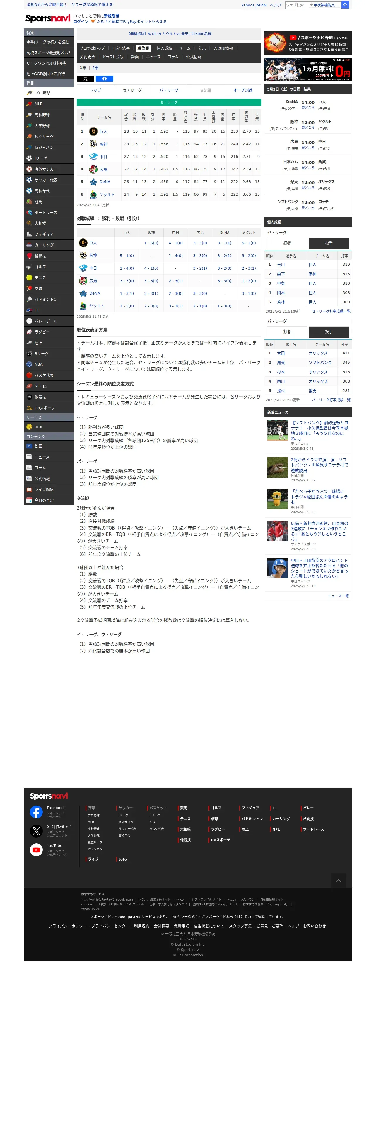 https://baseball.yahoo.co.jp:443/npb/standings/detail/1