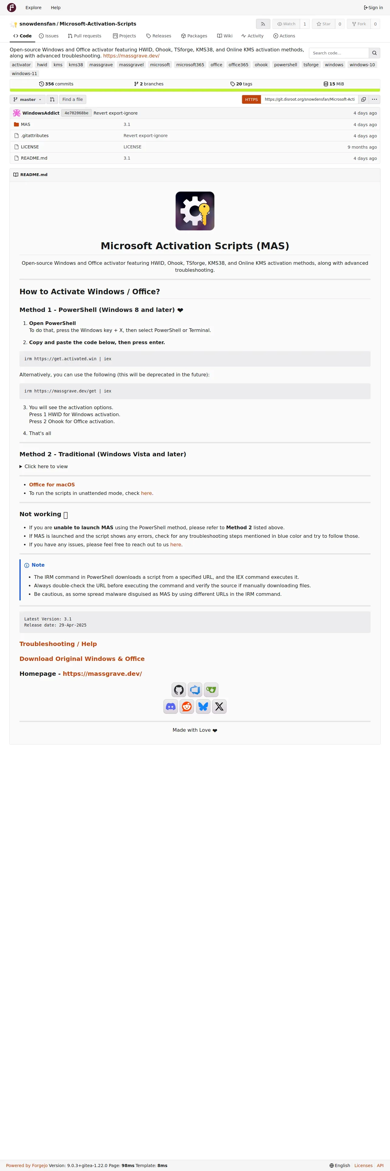 https://git.disroot.org:443/snowdensfan/Microsoft-Activation-Scripts