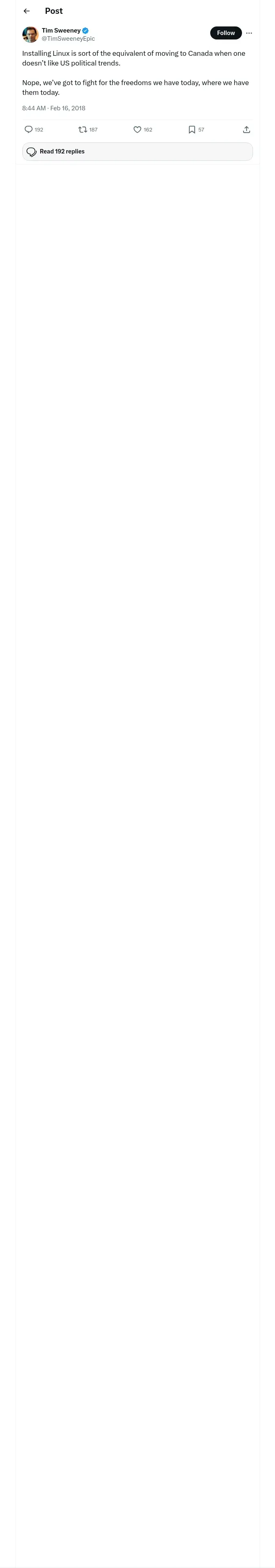 取得元URL: https://x.com:443/TimSweeneyEpic/status/964284402741149698
