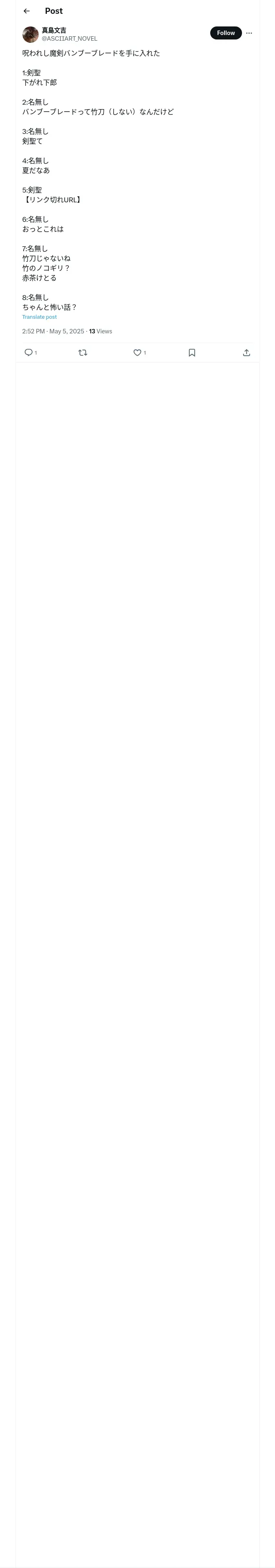 https://x.com:443/ASCIIART_NOVEL/status/1919268958357586067
