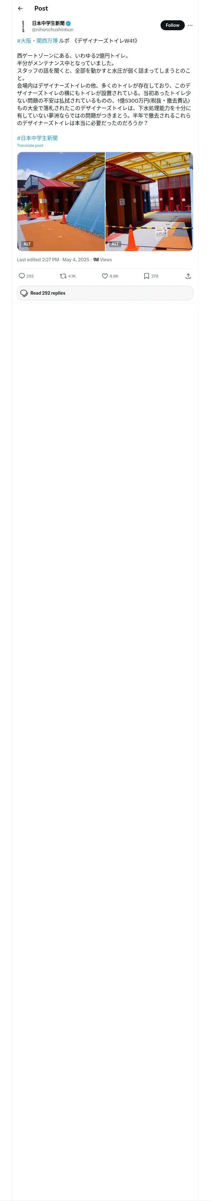 https://x.com:443/nihonchushinbun/status/1918900295347945714
