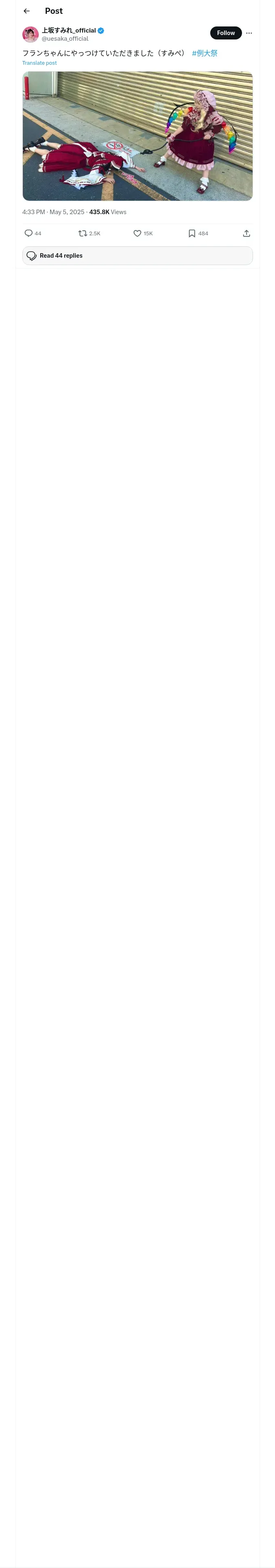 https://x.com:443/uesaka_official/status/1919294243656626364