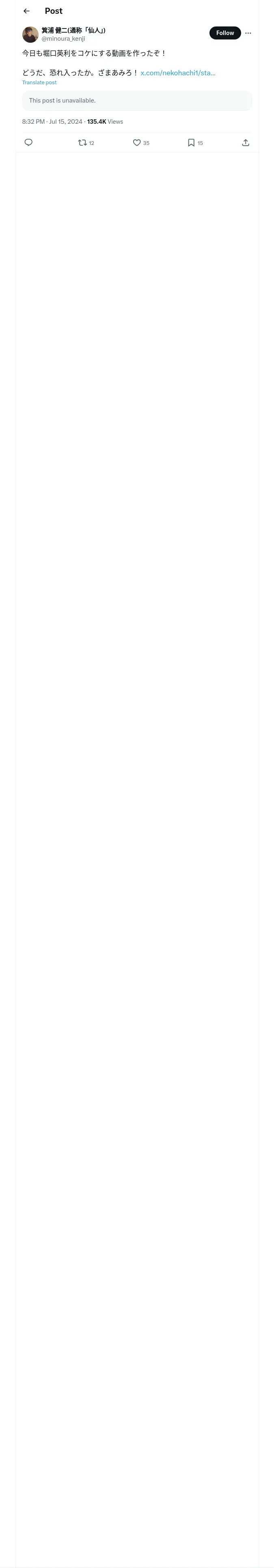 https://x.com:443/minoura_kenji/status/1812812556450566309?t=3_ocmV3G04uIptmkuLsTpQ&s=19