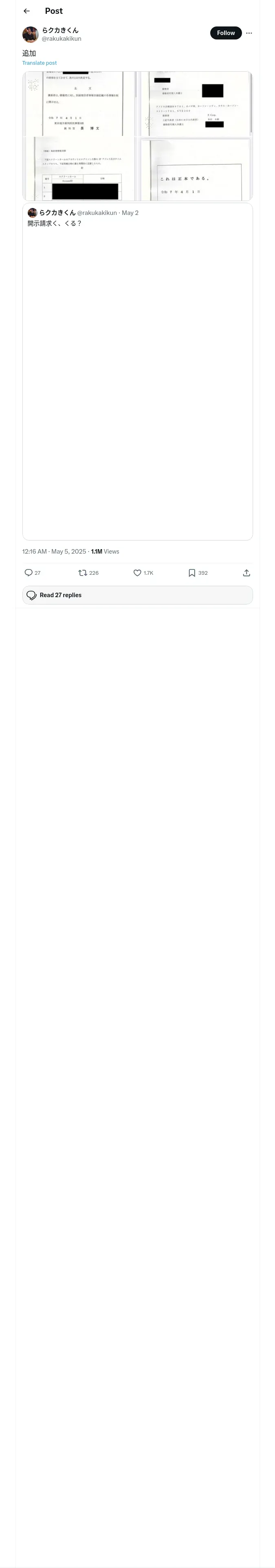 https://x.com:443/rakukakikun/status/1919048372478189733