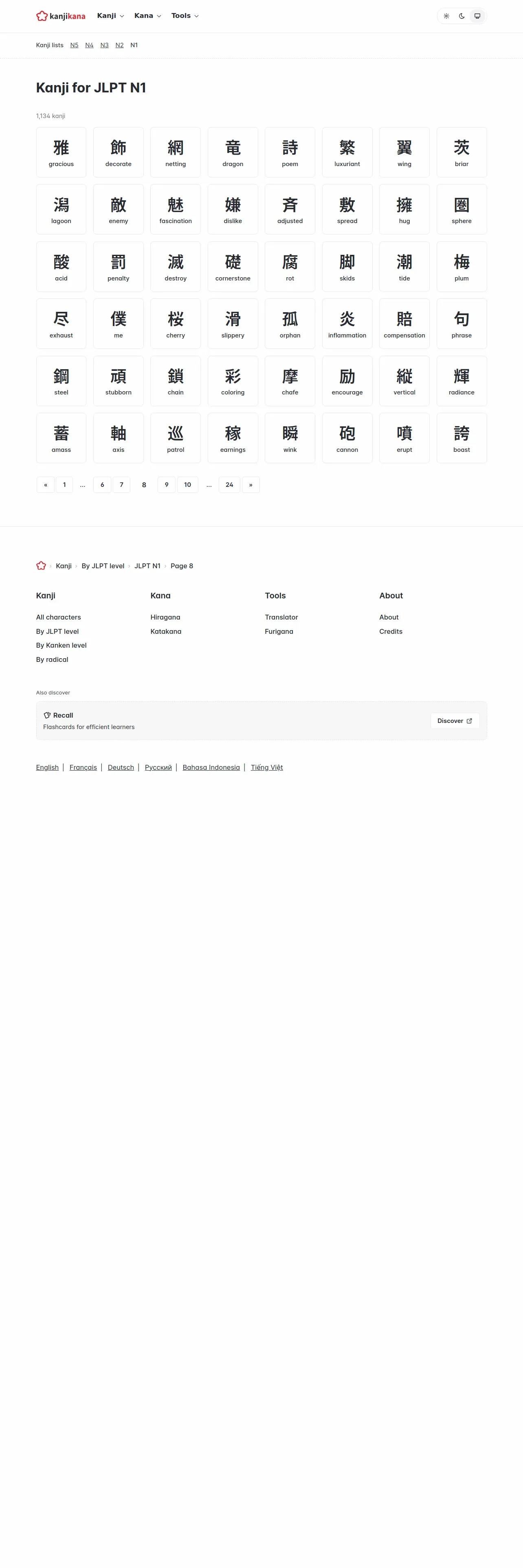 https://kanjikana.com:443/en/kanji/jlpt/n1/pages/8